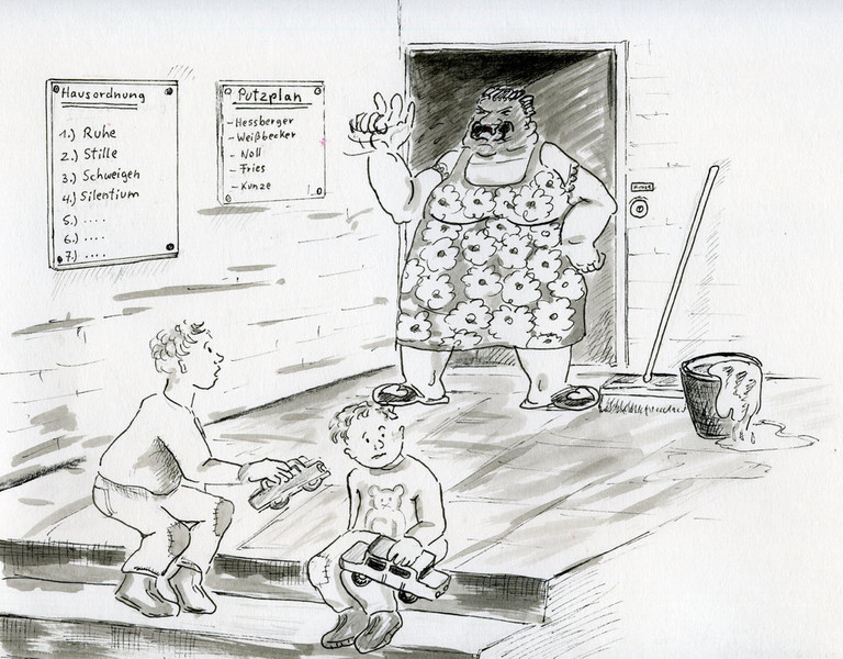 Erstellt im April 2014: "In diesem Haus wird nicht gelacht, sonst rufe ich die Polizei!"