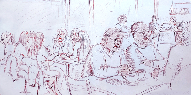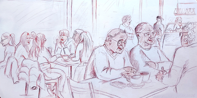 Eindrücke aus Café-Szenen. Aus dem Skizzenbuch.